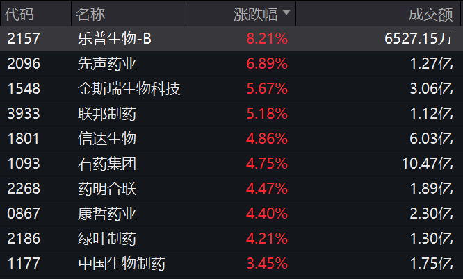 港股生物医药股也呈现拉升华信投资,乐普生物-B、先声药业、金斯瑞生物科技等涨幅居前。
