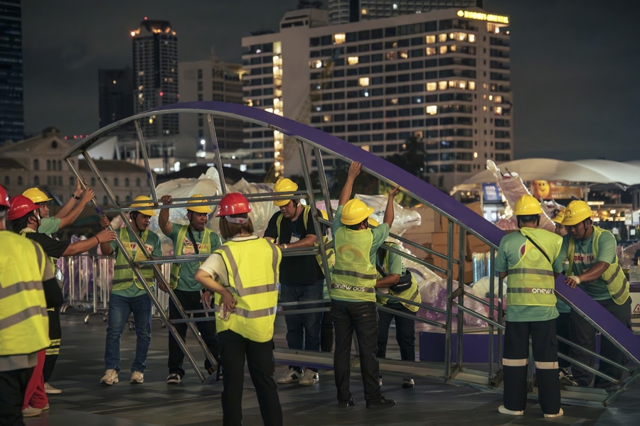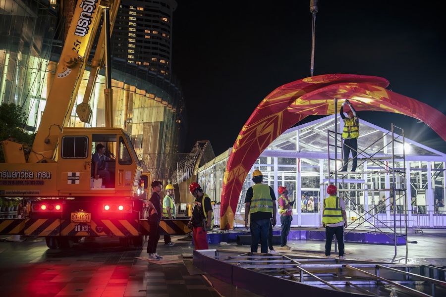 2025泰国豫园灯会即将于6月28日晚在曼谷著名商业地标暹罗天地ICONSIAM亮灯,献礼中泰建交50周年。日前,多达11个集装箱的灯彩作品已运抵曼谷,并加紧进行组装搭建。6月20日,记者从泰国豫园灯会主办方豫园股份处获悉,2025泰国豫园灯会灯组安装进度已近50%,主舞台灯组、中泰友谊之花灯组、白泽灯组等多个核心大型灯组均已完成组装。